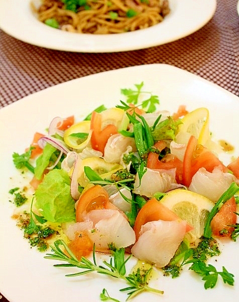 おもてなしサラダ ヒラメの彩りカルパッチョ風 レシピ 作り方 By Shiorin1211 楽天レシピ